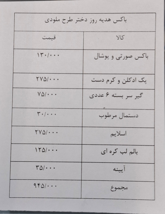 در صورت تمایل میتونید باکس سفارشی خودتون رو با وسایلی که میخواید با شماره ۰۹۹۶۱۹۶۰۷۳۵ هماهنگ کنید که براتون درست کنن .