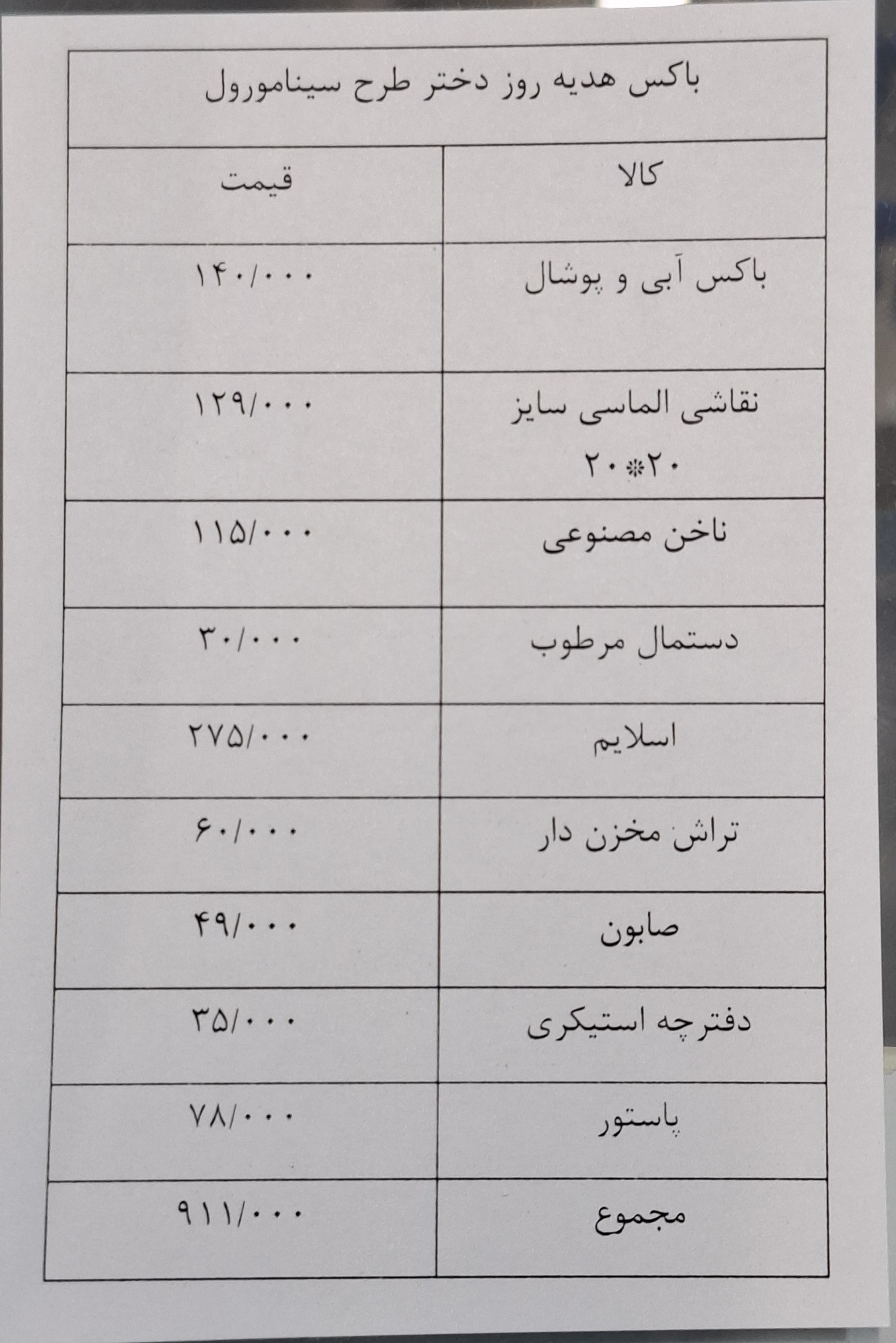 در صورت تمایل میتونید باکس سفارشی خودتون رو با وسایلی که میخواید با شماره ۰۹۹۶۱۹۶۰۷۳۵ هماهنگ کنید که براتون درست کنن .